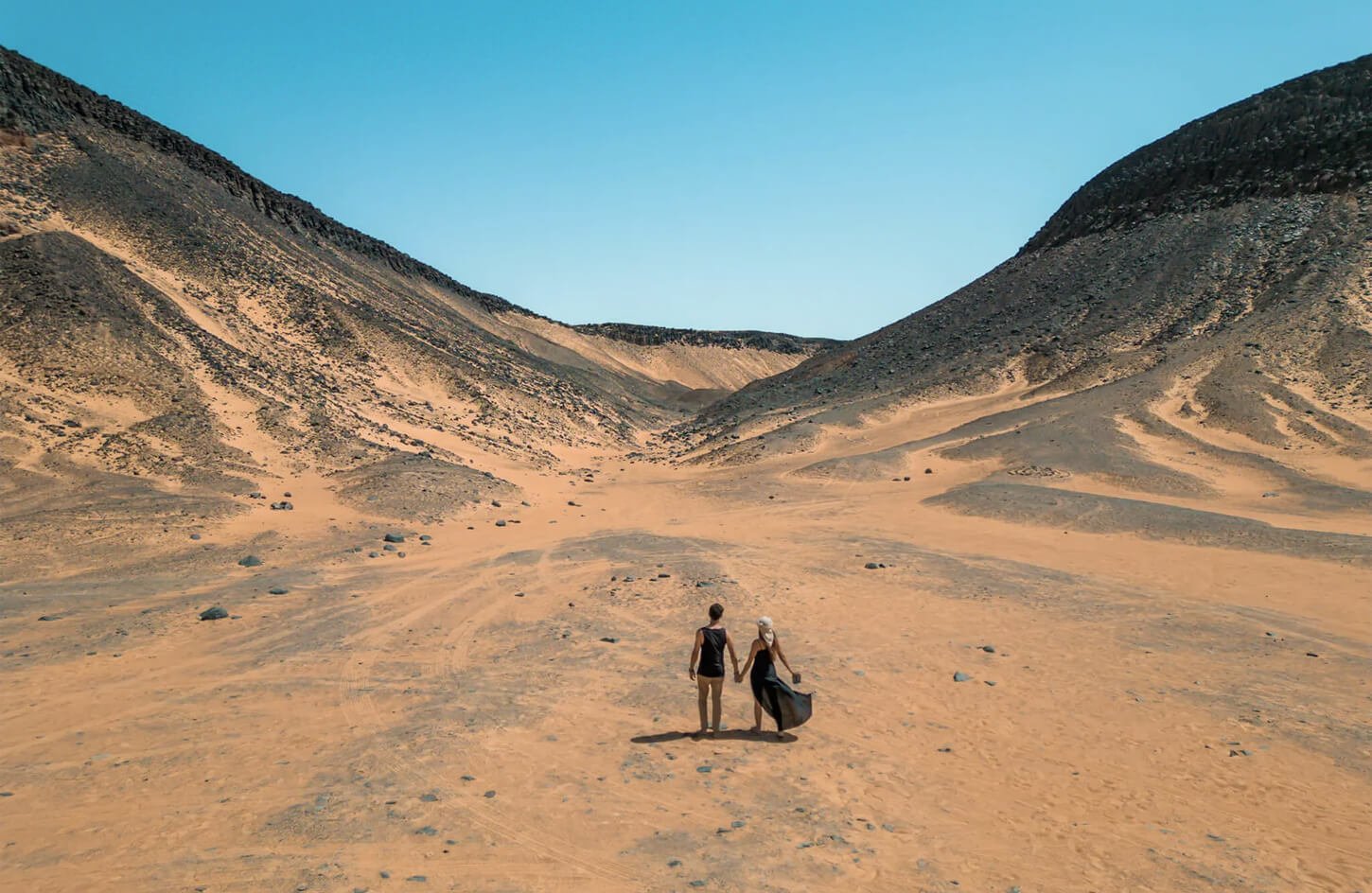 점심 후, 블랙 데저트를 방문하여 극적인 화산 언덕과 검은 현무암으로 덮인 언덕을 탐험하는 오후 모험을 시작하세요. 검은 언덕과 황금 모래의 대비는 잊지 못할 풍경을 만들어냅니다. 이후 모래 언덕과 독특한 암석 형성이 있는 그림 같은 엘 하이즈 계곡으로 이동합니다.