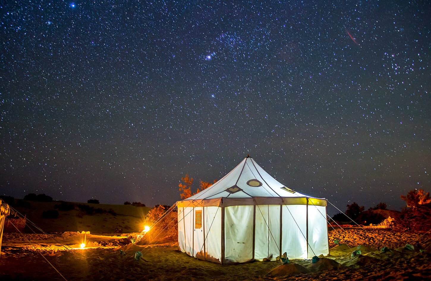 일몰 후, 저녁을 위해 사막 롯지로 돌아가 휴식을 취하세요.