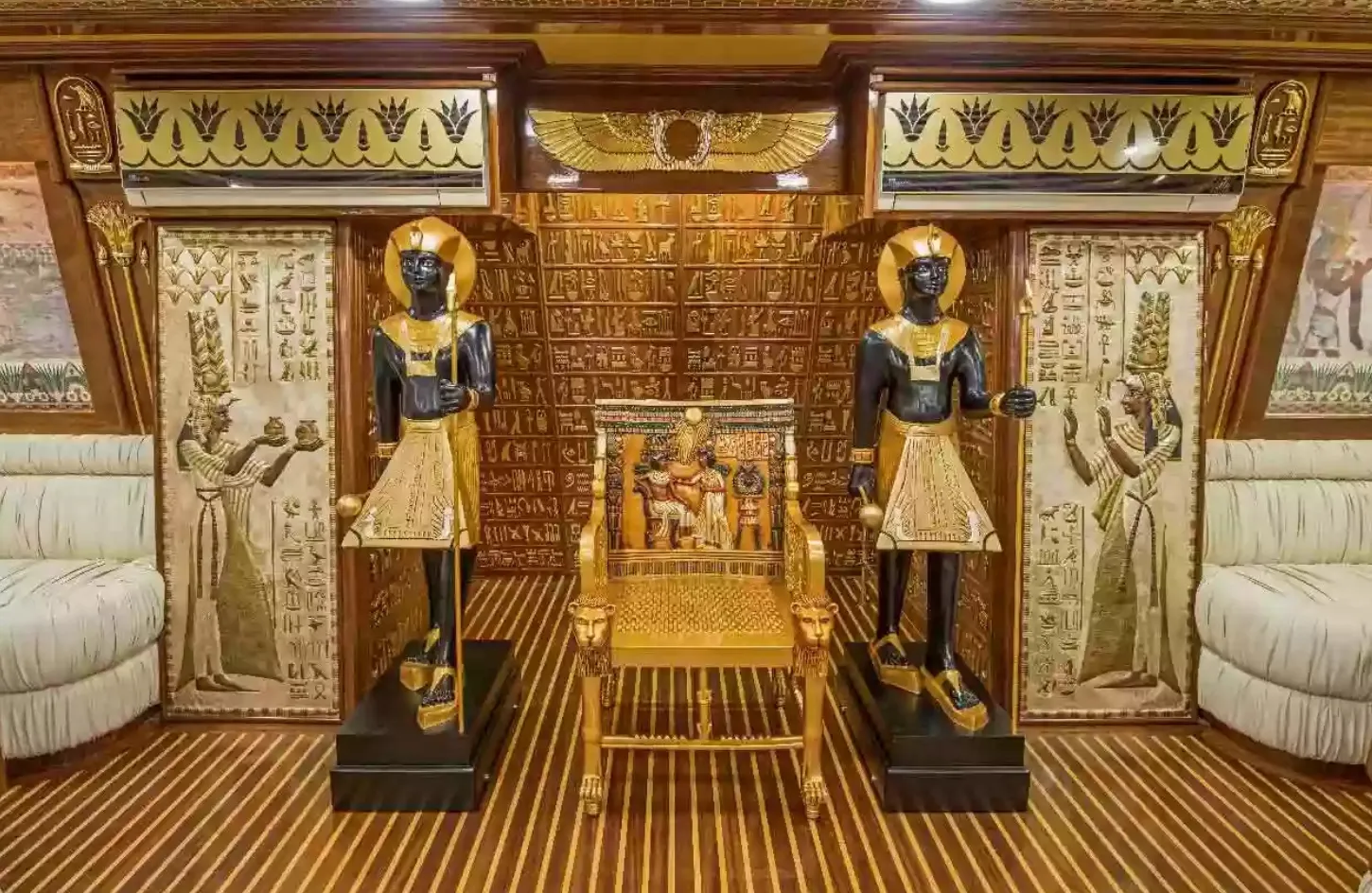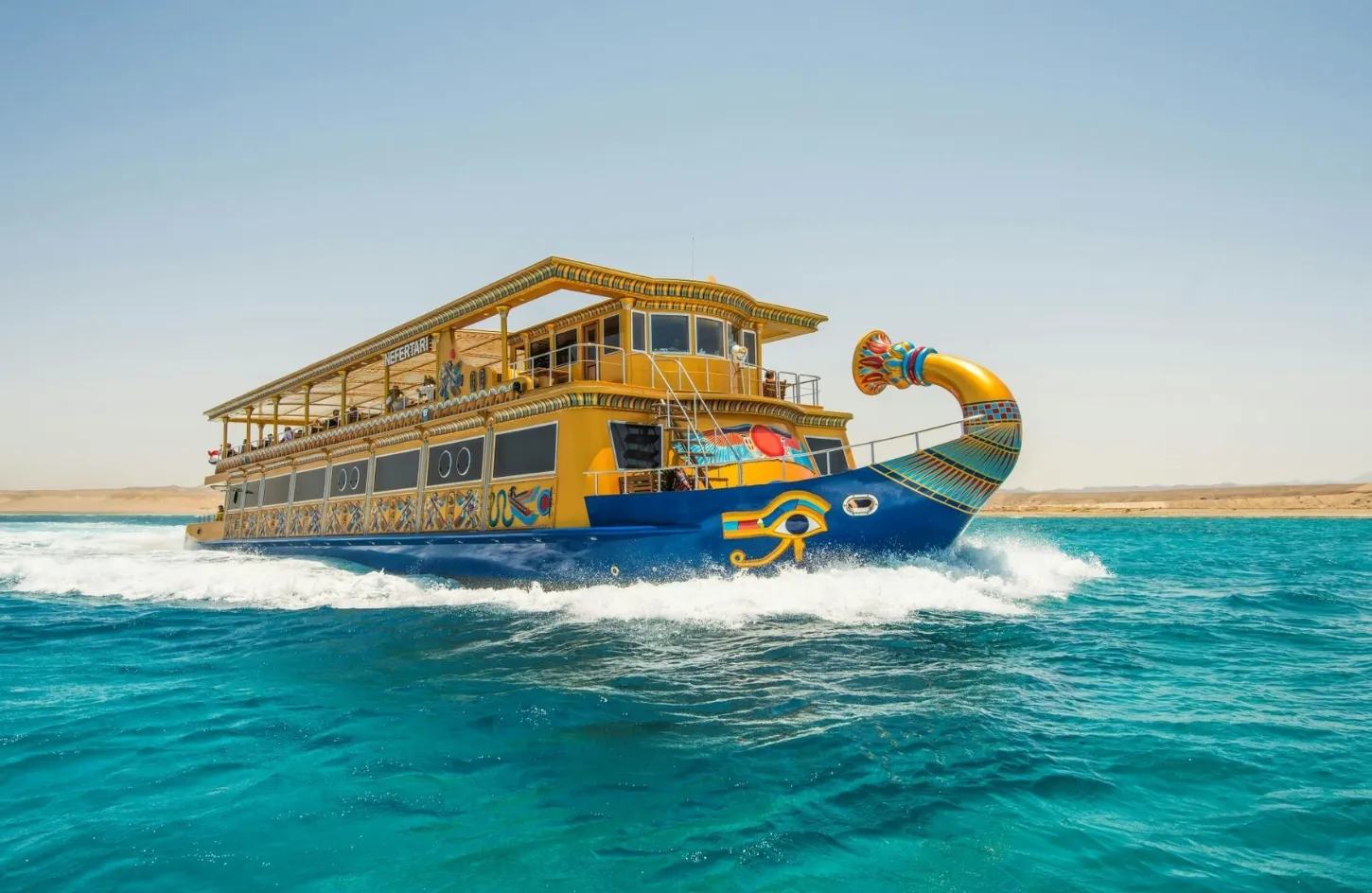 투어는 마르사 알람의 호텔에서 에어컨이 설치된 차량으로 편안하게 픽업되고 포트 갈립 마리나로 짧은 이동 후 시작됩니다. 도착하면 고대 이집트 모티프가 아름답게 디자인된 네페르타리 보트에 탑승하며 상쾌한 음료로 환영받습니다.