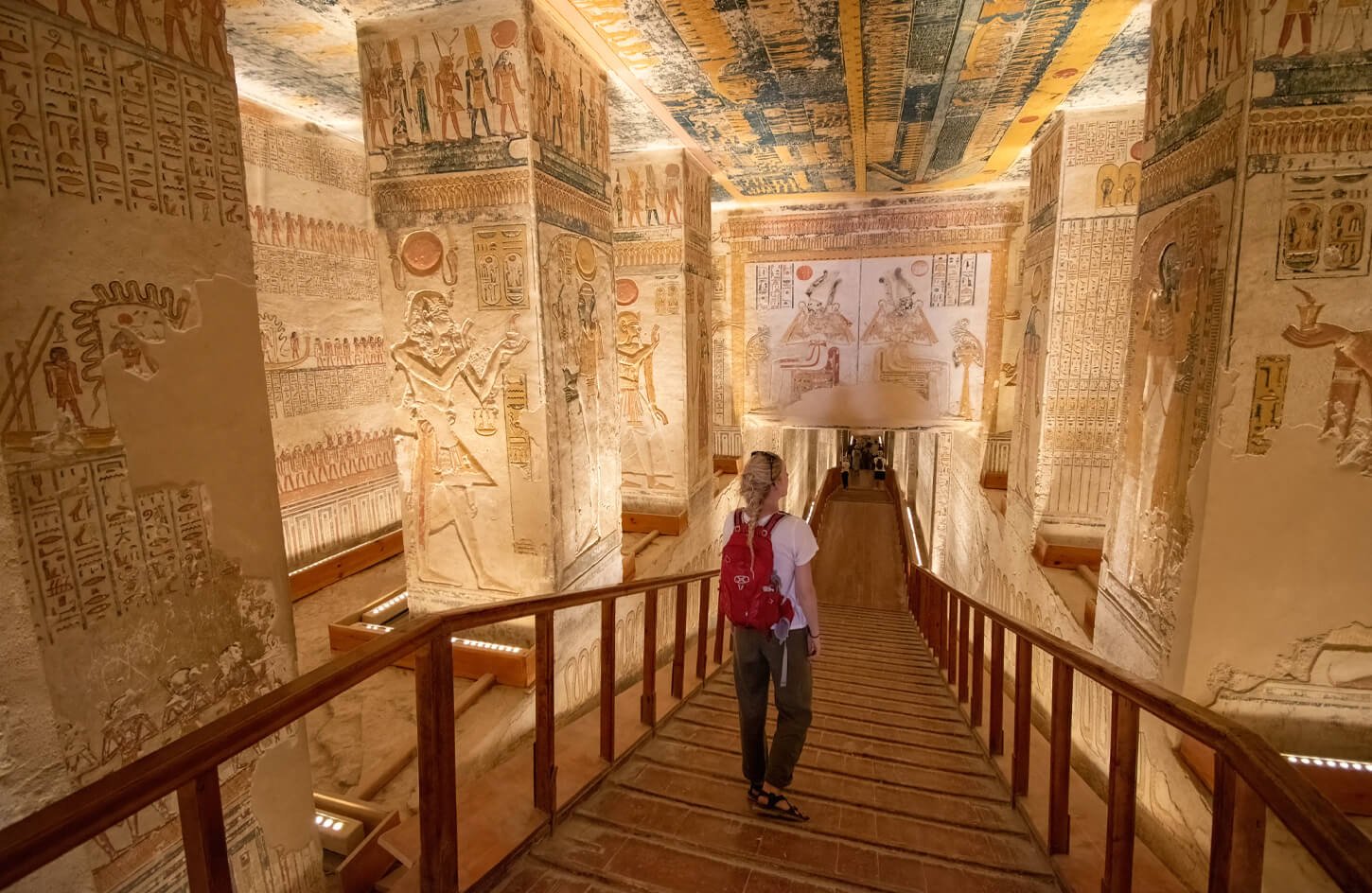 Visit the Valley of the Kings, the burial site of Egypt’s New Kingdom pharaohs. Enter elaborately decorated tombs adorned with colorful wall paintings depicting ancient beliefs about the afterlife, including the famous tomb of Tutankhamun.
