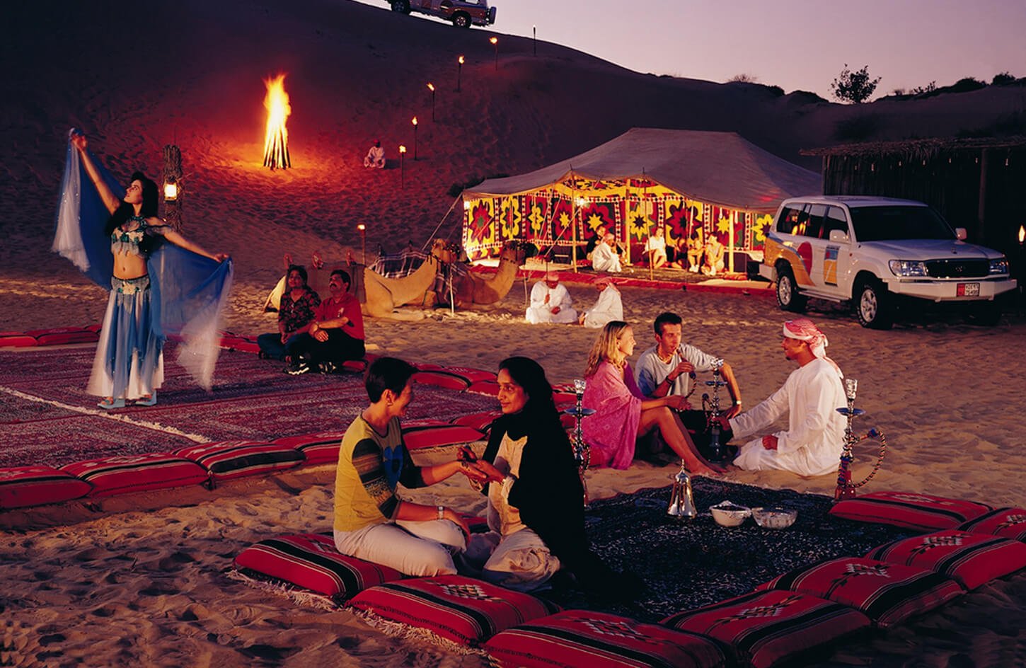Experience the lively spirit of the desert night with traditional music and captivating shows. Enjoy Tanoura dances, fire performances, and cultural entertainment that bring the evening to life.