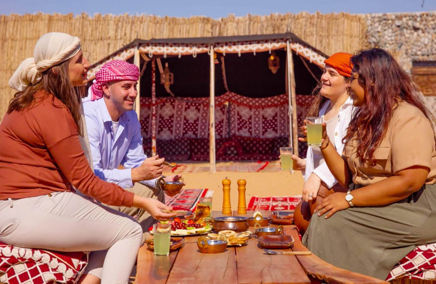 Relax with Arabic coffee, tea, dates, and cool water — a refreshing start that prepares you for the exciting experiences ahead.