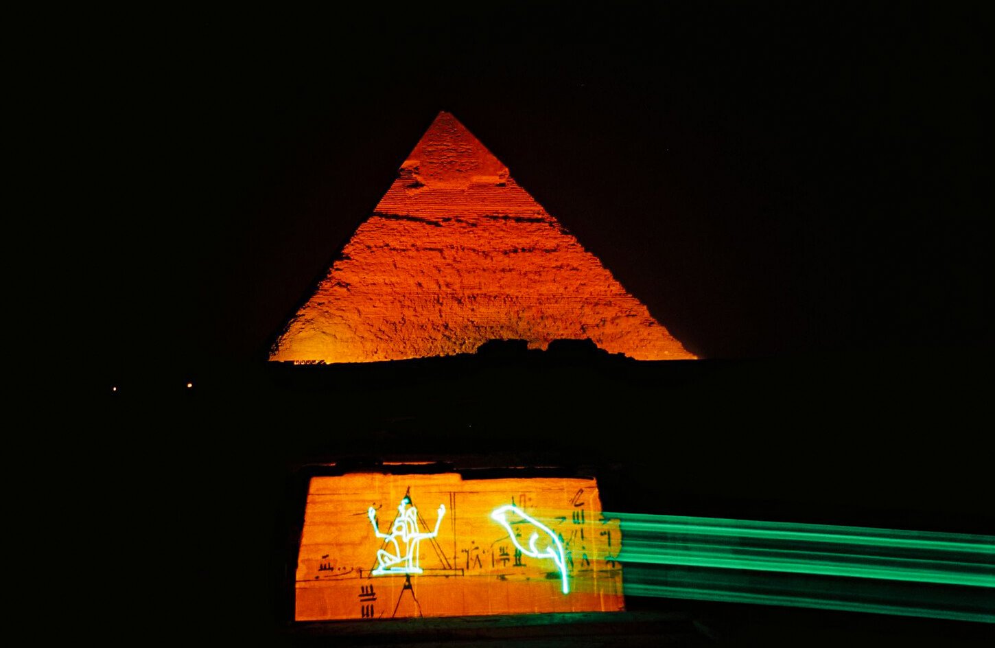 Immerse yourself in an unforgettable visual journey as powerful laser beams, vivid lighting, and colorful projections illuminate the Pyramids, the Sphinx, and the surrounding temples. Ancient symbols, hieroglyphs, and historical scenes are cast across the plateau, unveiling secrets of pyramid construction and fascinating moments from Egypt’s past. As the music intensifies, the performance builds toward a thrilling finale that brings the entire desert stage to life.